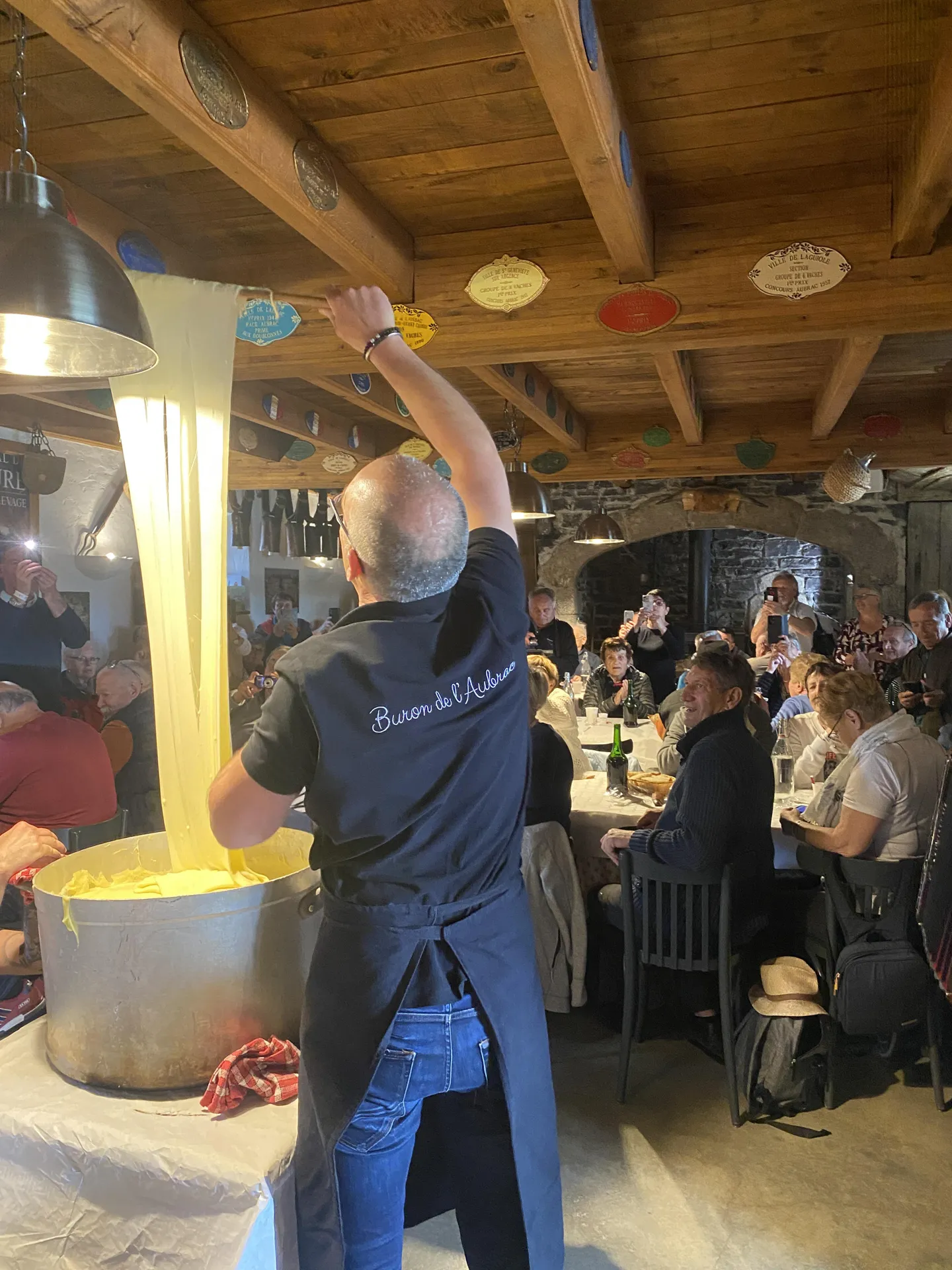 Service de l'aligot au chaudron.