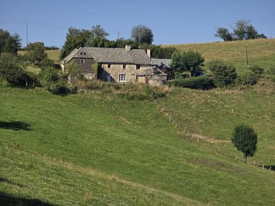 - Depuis le parking partir en face, passer devant le monument aux morts et remonter entre des habitations pour s'engager dans un chemin creux bordés de murets. Rejoindre un chemin d'exploitation, partir à droite et rejoindre la ferme "Le Coudenas". Au lieu-dit "La Plaine" laisser à droite la D142 et prendre à gauche sur une petite route sur 500m. Poursuivre sur un large chemin (panorama sur la plateau de l'Aubrac à droite) et descendre dans la vallée de "Cantarone". Passer devant une grange et rejoindre le ruisseau d'Agols.