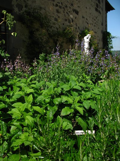 Idéal pour une pause, au milieu des "carrés des simples", où se côtoient plantes aromatiques et d'ornement, une jolie fontaine invite à une pause, et un petit belvédère offre une belle plongée sur la vallée de la Brommes - ancienne vallée glaciaire".