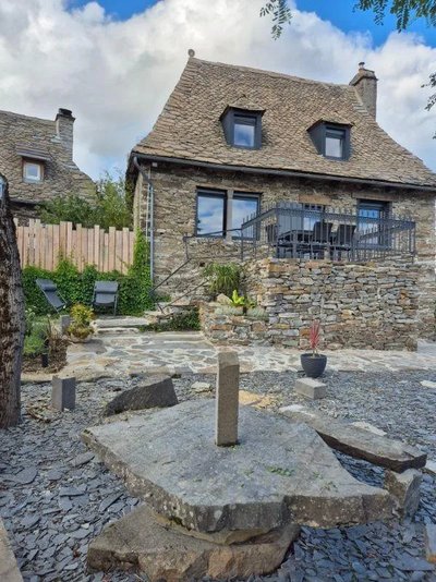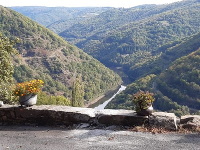 - Poursuivre sur la route, bifurquer à droite dans l’épingle, vers le chemin à flanc. Tout au long de ce chemin, découvrir une carrière de lauzes, d’anciennes vignes, les gorges de la Truyère et le château Valon. Continuer sur ce chemin pendant 1 km.